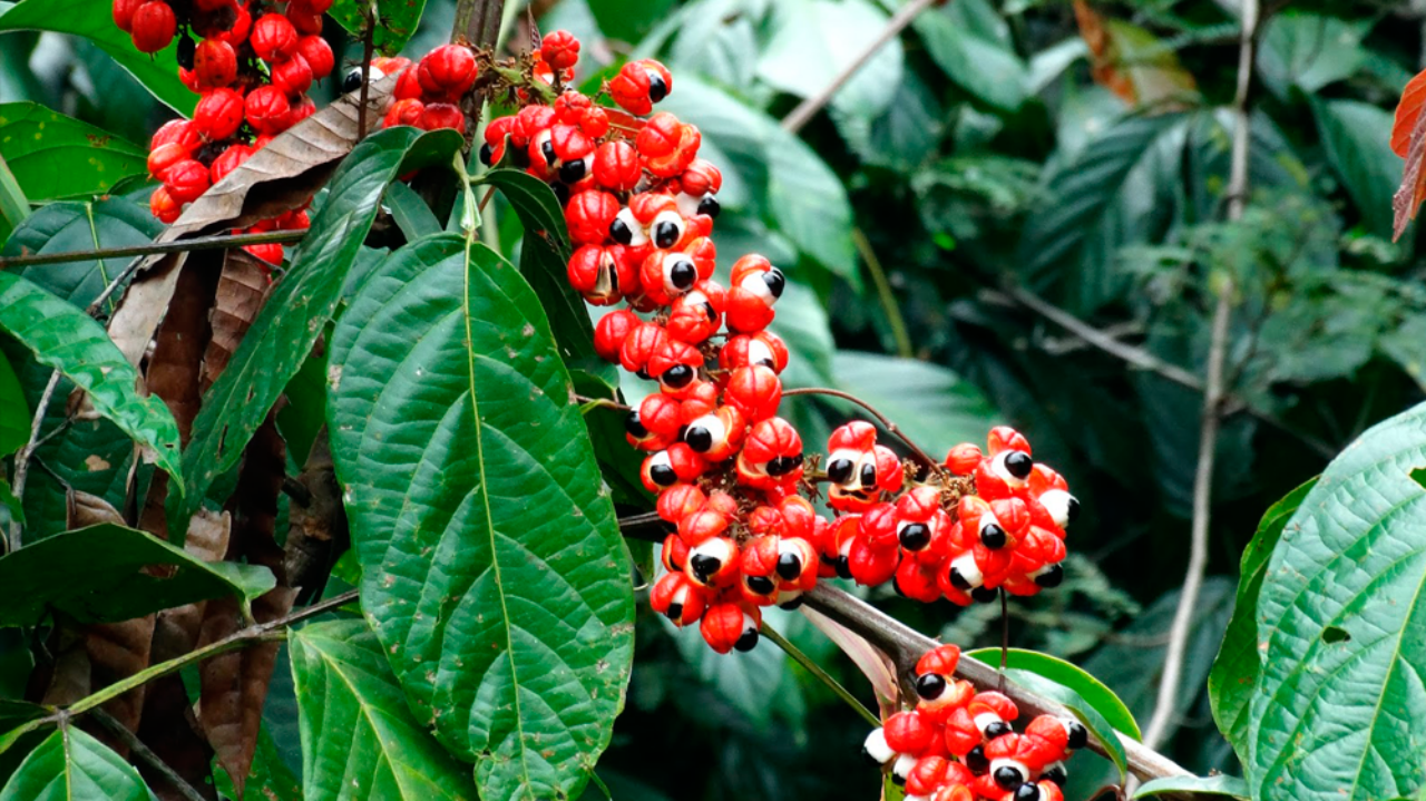 Natural da Amazônia, e cultivado quase que exclusivamente no Brasil, o guaranazeiro é um cipó que se enrosca no tronco das grandes árvores e sobe muito, podendo atingir até 10m. Suas flores são brancas, de formato parecido com as do café. Quando a flor cai, aparece o fruto, pouco maior que um grão-de-bico e fortemente colorido: vermelho em cima e amarelo embaixo. Desse fruto de aparência estranha, semelhante a um olho humano, é extraído o pó de guaraná, encontrado em drogarias, casas de produtos naturais e supermercados.